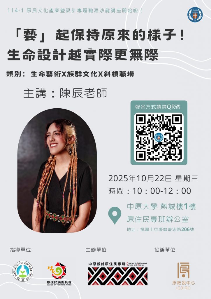 一、講座為探討原住民文化產業的現況與未來發展方向、分享設計專題中的創新思維及實踐經驗、了解設計領域中的職涯發展路徑與挑戰、提供與講者面對面交流的機會,汲取專業知識與職涯規劃建議,促進對原住民族文化的理解與支持,並激發大家對未來職涯的創新思維。